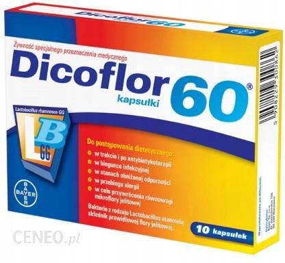Suplement dietyIlość: 10 lub 20 kapsułekDicoflor 60® to suplement diety w postaci kapsułek, zawierający liofilizowane żywe kultury bakterii Lactobacillus rhamnosus GG, które wzbogacają mikroflorę jelitową.