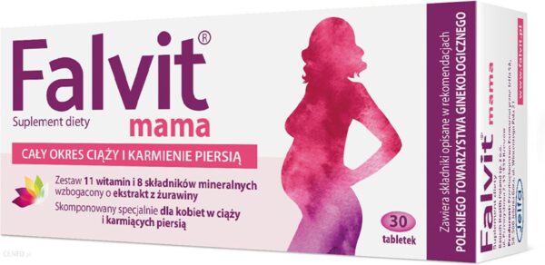 Falvit® mama to suplement diety przeznaczony dla kobiet w ciąży i karmiących piersią, do stosowania przez cały okres ciąży i laktacji.