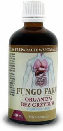 FUNGO FARM 100 ml Inventfarm ziołowa mieszkanka do walki zagrzybieniem organizmuFungoFarm Organizm bez grzybów to naturalny, doustny, preparat ziołowy zawierający wyciągi z kilkunastu ziół wspierający walkę z grzybami w organizmie człowieka.Maksymalna porcja do przyjmowania w ciągu dnia to 5ml (100 kropli) . FungoFarm jest wyciągiem glicerolowo-wodnym, w składzie którego znajdują się następujące zioła:- goździkowiec korzenny (Syzygium aromaticum) -100mgziele lebiodki pospolitej (oregano) (Origanum vulgare) -100mgkwiat rumianku pospolitego (Chamomillae anthodium vulgare) -50mgpropolis – 50mg, liść pokrzywy zwyczajnej (Urtica dioica L. Folium) -50mgliść oliwki europejskiej (Olea europaea L.) -37,5mgliść krwawnika pospolitego (Achillea millefolium folium) -37,5mgczosnek pospolity (Allium sativum L.) -25mgliść szałwii lekarskiej (Salvia officinalis folium) -25mgziele skrzypu polnego (Equiseti herba) -25mgolejek z drzewa herbacianego (Melaleuca alternifolia) -1,25mgolejek lawendowy (Oleum lavandulae) -0,75mgsubstancja konserwująca: sorbinian potasu i benzoesan sodu, rozpuszczalnik: glicerol, woda.Preparat zawiera 60-65% glicerolu.Działanie poszczególnych ziół preparatu ParaFarm.Goździkowiec korzenny – ma działanie przeciwgrzybiczne, przeciwbakteryjne; znajduje zastosowanie przy usuwaniu pasożytów jelitowych.ziele lebiodki pospolitej (oregano) – ma właściwości grzybobójcze, bakteriobójcze.Stosowany także przy dolegliwościach układu oddechowego i pokarmowego.kwiat rumianku pospolitego – wspiera organizm w walce z bakteriami, wzdęciami i stanami zapalnymi. Propolis – charakteryzuje się zdolnością do niszczenia i zatrzymywania bakterii, grzybów oraz wirusów. liść pokrzywy zwyczajnej – działa odtruwająco na organizm, wspiera odporność organizmu i przemianę materii. liść oliwki europejskiej – jako środek antybakteryjny wspiera leczenie chorób wywołanych wirusami, bakteriami i pierwotniakami. Stosowana m.in. przy leczeniu infekcji układu jelitowego. Ma działanie bakteriostatyczne, przeciwutleniające. liść krwawnika pospolitego – ma funkcje przeciwzapalne i antybakteryjne. czosnek pospolity – odznacza się działaniem przeciwgrzybicznym, przeciwbakteryjnym i przeciwwirusowym. Stosowany przy problemach z funkcjonowaniem przewodu pokarmowego. liść szałwii lekarskiej – Pomaga zwalczać infekcje i zakażenia, działa grzybobójczo, hamuje namnażanie bakterii. Wspiera organizm przy leczeniu niestrawności i niewystarczającym wydzielaniu soków trawiennych. ziele skrzypu polnego – ma działanie przeciwzapalne, przeciwbakteryjne, odtruwające organizm. olejek z drzewa herbacianego – mając działanie przeciwwirusowe, przeciwbakteryjne znajduje zastosowanie przy leczeniu infekcji, wspomaga leczenie m.in. grzybicy.olejek lawendowy – ma działanie przeciwbakteryjne, przeciwgrzybiczne i przeciwzapalne. Naturalny preparat ziołowy Fungo Farm 100ml ma następujące działanie:powoduje zmniejszenie potencjalnie patogennych mikroorganizmów przewodu pokarmowego,ma właściwości antyoksydacyjne,wspiera zdrowie układu odpornościowego i oddechowego,przyczynia się do ochrony organizmu przed czynnikami zewnętrznymiSkład FungoFarm:goździkowiec korzenny (Syzygium aromaticum), ziele lebiodki pospolitej (Origanum vulgare), kwiat rumianku pospolitego (Chamomillae anthodium vulgare), propolis, liść pokrzywy zwyczajnej (Urtica dioica L. Folium), liść oliwki europejskiej (Olea europaea L.), liść krwawnika pospolitego (Achillea millefolium folium), czosnek pospolity (Allium sativum L.), liść szałwii lekarskiej (Salvia officinalis folium), ziele skrzypu polnego (Equiseti herba), olejek z drzewa herbacianego (Melaleuca alternifolia), olejek lawendowy (Oleum lavandulae), substancja konserwująca: sorbinian potasu i benzoesan sodu, rozpuszczalnik: glicerol, woda.Wskazówki dotyczące stosowania Fungo Farm:Dorośli: Doustnie. 2 razy dziennie po 50 kropli (2 razy po 2,5 ml) na 30 minut przed posiłkiem przez okres 10 dni.Maksymalna porcja dzienna wynosi 5 ml (100 kropli). Nie należy przekraczać zalecanej porcji do spożycia w ciągu dnia.Suplement diety nie może być stosowany jako substytut zróżnicowanej diety.Aby zachować dobrą kondycję i zapewnić prawidłowe funkcjonowanie organizmu należy prowadzić zdrowy tryb życia oraz stosować zróżnicowaną dietę.WAŻNE:Preparat nie jest wskazany dla kobiet w ciąży i matek karmiących. Produkt nie powinien być stosowany przez osoby uczulone na którykolwiek ze składników.Magazynowanie:Preparat należy przechowywać w temperaturze pokojowej w miejscu niedostępnym dla małych dzieci oraz chronić przed wilgocią i bezpośrednim działaniem promieni słonecznych.