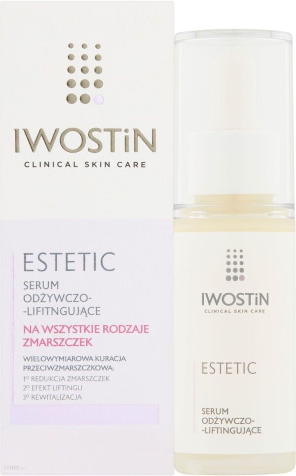 W ramach linii Iwostin Estetic dobierz odpowiedni produkt uzupełniający: peeling z 7% kwasem laktobionowym, peeling z 5% kwasem migdałowym, peeling z 12% kwasem glikolowym, serum odżywczo-liftingujące oraz liffting w kremie.