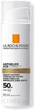 Krem do twarzy La Roche-Posay Anthelios Age Correct zapewnia skórze codzienną ochronę przed negatywnymi skutkami nadmiernej ekspozycji na słońce. Zawarte w składzie kosmetyku filtry przeciwsłoneczne stanowią szerokie spektrum ochrony przed promieniowaniem UVA i UVB. Wspólne działanie Meroxylu XL, witaminy B3, witaminy E oraz wody termalnej z La Roche-Posay zapewnia skórze twarzy całodzienną fotoprotekcję. Przeciwutleniające składniki chronią przed stresem oksydacyjnym w wyniku zanieczyszczeń i promieniowania podczerwonego typu A.Połączenie w składzie kremu składników aktywnych, jakimi są sfragmentaryzowany kwas hialuronowy, phe-rezorcynol i niacynamid daje następujące efekty:zmniejszenie zmarszczek i drobnych linii,redukcja przebarwień,zwiększenie elastyczności skóry,długotrwałe nawilżenie.Krem codzienna ochrona La Roche-Posay Anthelios chroni skórę nie tylko przed promieniowaniem słonecznym, ale również ogranicza przyczepność cząstek zanieczyszczeń powietrza do skóry twarzy. Nietłusta konsystencja kremu pozostawia na skórze aksamitne wykończenie.Hipoalergiczny.Niekomedogenny.Testowany pod kontrolą dermatologiczną i okulistyczną.
