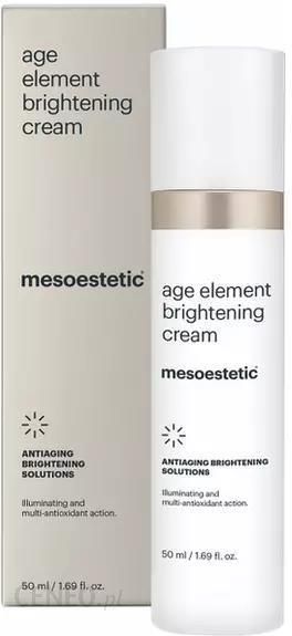 Mesoestetic Age Element Brightening Cream Krem odnawiająco – rozjaśniający 50 ml Kosmetyk przeznaczony dla osób borykających się z nierównomiernym, poszarzałym kolorytem, pierwszymi oznakami starzenia, a także narażonych na stres oksydacyjny. Krem opiera swoje działanie na połączeniu niacyny i sklareoidu, czyli biofermentu otrzymywanego z szałwii muszkatołowej. Dzięki silnym właściwościom przeciwutleniającym skutecznie zapobiega negatywnym efektom działania wolnych rodników na skórę, opóźniając procesy starzenia. W wyniku regularnego stosowania preparatu cera zyskuje promienny blask, a oznaki zmęczenia zostają zredukowane. Krem ma również działanie rozjaśniające i rewitalizujące. Codzienne stosowanie kosmetyku uprzyjemnia łagodny zapach łączący nuty mandarynki i drewna kaszmirowego. Wskazania pierwsze oznaki starzenia fotostarzenie utrata blasku przebarwienia, nierównomierny koloryt „skóra palacza” ekspozycja na promieniowanie UV, światło niebieskie, zanieczyszczenie środowiska stres oksydacyjny Zastosowanie Krem należy aplikować po zastosowaniu serum, codziennie rano i wieczorem, wmasowując w skórę do całkowitego wchłonięcia. Składniki aktywne Sklareoid (bioferment otrzymywany z szałwii muszkatołowej), niacyna. Skład INCI* Aqua, Dipropylene Glycol, Alcohol Denat., Niacinamide, Squalane, 3-0-Ethyl Ascorbic Acid, Coco-Caprylate/Caprate, Cocos Nucifera Oil, Dimethicone, Undecane, Arginine, Theobroma Grandiflorum Seed Butter, Glycerin, Caprylic/Capric Triglyceride, Sodium Hyaluronate, Ascorbyl Propyl Hyaluronate, Acetyl Tetrapeptide-2, Shikimic Acid, Biosaccharide Gum-1, Hydrogenated Olive Oil Unsaponifiables, Sclareolide, Ethylhexylglycerin, Helianthus Annuus Seed Oil, Isohexadecane, Ferulic Acid, Maslinic Acid, Isoquercetin, Tocopheryl Acetate, Tocopherol, Butylene Glycol. Propanediol, 1.2-Hexanediol, Sodium Citrate, Polysorbate 60, Sorbitan Isostearate, Acrylates/CIO-30 Alkyl Acrylate Crosspolymer, Polyacrylate Crosspolymer, Dimethicone Crosspolymer, Sodium Acrylate/Acryloyldimethyltaurate/Dimethylacrylamide/Crosspolymer, Tridecane, Disodium EDTA, Phenoxyethanol, Parfum, CI 15985. * podany skład może ulec zmianie. Pełny skład INCI znajduje się zawsze na opakowaniu.
