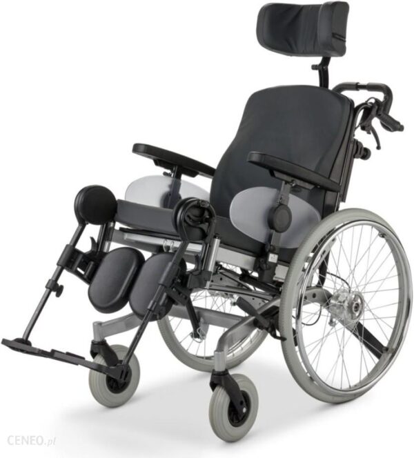 Wózek stabilizujący Solero Light firmy MEYRASpecjalistyczny wózek przeznaczony do pielęgnacji osób starszych oraz chorych zarówno w domach opieki, hospicjach jak i w ogniskach domowych.W wózku Solero Light zastosowano anatomiczne siedzisko oraz specjalne oparcie, dzięki czemu można go użytkować komfortowo przez wiele godzin, zapewniona jest stabilna pozycja dla chorego. Wózek posiada wiele możliwości regulacji, w tym wysokości siedziska od podłoża w zakresie od 39 do 52 cm, a także kąta siedziska od -8 do 26 stopni, kąta oparcia pleców od -8 do 35 stopni, kąta podnóżków wraz z automatyczną regulacji długości podudzia. W ten sposób można dopasować wózek do indywidualnych potrzeb użytkownika.Firma Meyra bardzo przykłada uwagę do komfortu użytkowania, wózek posiada podnóżek dzielony z opcją długości kąta i możliwością stabilizacji łydek – taka opcja bardzo ułatwia korzystanie z wózka zwłaszcza osobom starszym. Wózek mimo swoich gabarytów jest zwrotny i przyjazny dla użytkownika i opiekuna. Zdejmowana wodoodporna tapicerka ułatwia dbanie o czystość wózka. Zagłówek ma możliwość regulacji wysokości, długości i kąta pochylenia.Niemieccy inżynierowie stworzyli doskonały wózek dla osób z niestabilnym tułowiem, szczególnie dla pacjentów z paraliżem lub niedowładem czterokończynowym , trzykończynowym, dla osób po udarach oraz z SM.CECHY PRODUKTU:stała ramasiedzisko anatomicznepłynna regulacja kąta oparcia 30˚ płynna regulacja kąta siedziska oraz podnóżkówzdejmowana, wodoodporna tapicerkazagłówek z regulacją wysokości, długości i kąta pochyleniaboczek wyjmowany z regulacją długości, wysokościpodnóżek dzielony z regulacją długości i kąta ze stabilizacją łydekkoła tylne pełne rozmiar 24 1³/₈”koła przednie pełne 20x5hamulce dociskowekolor ramy srebrnyOpcjonalnie wózek może posiadać peloty, klin, a także stolik i uchwyt na laskę czy kulę. Dostępny jest także w opcji transportowej, z kołami tylnymi o wielkości 12”.Cena dotyczy wózka w wersji podstawowej, wszelkie opcje dodatkowe są płatne (ceny podane są w formularzu poniżej – prosimy wypełnić w razie zainteresowania).FORMULARZ ZAMÓWIENIA NA DODATKOWE OPCJESzerokość siedziska (cm) 43 – 46 / 48 – 51Szerokość wózka (cm) min. 62Głębokość siedziska (cm) 42 – 48Wysokość siedziska (z poduszką) (cm) 44 (52)Wysokość całkowita (cm) 104 – 118Wysokość oparcia (cm) 53 – 56Kąt oparcia 0˚+31˚Kąt nachylenia siedziska -2˚ – 25˚Wysokość podłokietników (cm) 21 – 27Długość z podnóżkiem/bez podnóżka (cm) 118 / 91Tylne koła średnica 24”Minimalna waga wózka (kg)* 38Maksymalne obciążenie (kg) 130