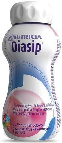 Diasip o smaku truskawkowym płyn odżywczy to bezglutenowa dieta normalizująca glikemię, kompletna, normokaloryczna. Produkt od Nutricia jest gotową do spożycia żywnością specjalnego przeznaczenia medycznego, przeznaczoną do picia.Preparat Diasip w płynie został opracowany z myślą o pacjentach z cukrzycą lub upośledzoną tolerancją glukozy wymagających postępowania żywieniowego, w szczególności przed oraz po zabiegach operacyjnych, jak również w okresie rekonwalescencji, po udarze, w zaburzeniach żucia i połykania oraz przy braku apetytu o różnej etiologii.
