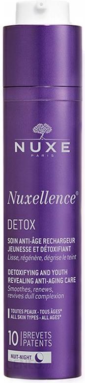 Pielęgnacyjny preparat przeciwstarzeniowy Nuxellence® DETOX na bazie 10 opatentowanych substancji czynnych oraz wyciągów z passiflory i drzewa jedwabnego to pierwszy preparat na noc, który wnika do wnętrza komórek skóry, gdzie przyspiesza procesy usuwania toksyn i naturalnej odnowy, pomagając im zachować optymalny poziom energii.Sprawia, że rano cera jest ożywiona i emanuje świeżością i blaskiem, niczym po 2 dodatkowych godzinach snu. Z nocy na noc skóra regeneruje się, oczyszcza z toksyn i odzyskuje młody wygląd.