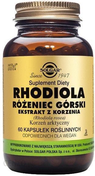 Solgar Rhodiola Różeniec Górski 60 kaps.Różeniec górski zwany także „arktycznym korzeniem” lub „złotym korzeniem” swoją popularność zawdzięcza niezwykle skutecznemu działaniu adaptogennemu pozwalającemu na przystosowanie funkcjonowania ludzkiego organizmu w warunkach ciągłego lub silnego stresu fizycznego i emocjonalnego. Nie zakłóca prawidłowego funkcjonowania organizmu, wręcz przywracając takie działanie pozwala na radzenie sobie ze stresem i w znacznym stopniu ogranicza jego oddziaływanie na różne strefy życia w tym i strefę seksualną.