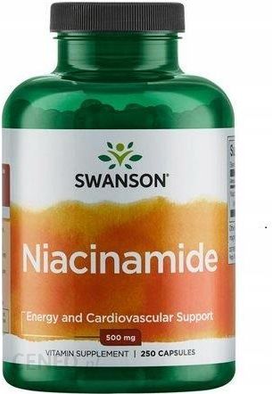 Właściwości SWANSON Niacinamide 500mg 250caps:Przeciwdziała oznakom starzenia się skóryRedukuje bóle głowy pochodzenia naczyniowegoHamuje powstawanie blaszki miażdżycowej Zapobiega chorobom układu sercowo-naczyniowegWykazuje pozytywny wpływ na gospodarkę tłuszczową Stanowi prekursor dla produkcji NAD oraz NADPNie wywołuje zaczerwienienia skóry, jak w przypadku niacynyWykazuje działanie immunomodulująceNiacinamide 500mg od Swanson-witamina B3 znacznie bardziej tolerowana przez organizm niż tradycyjny jej odpowiednikSWANSONNiacinamide-to amid kwasu nikotynowego, czyli witamina B3, która w odróżnieniu od tradycyjnej formy tej witaminy jaką jest niacyna, jest znacznie bardziej tolerowana przez organizm niż klasyczny jej odpowiednik, nawet przy dużych dawkach.SWANSONNiacinamide jest unikalnym suplementem który zapewnia maksymalne korzyści jakie mogą płynąć z suplementacji witaminą b3. Doskonale sprawdza się w profilaktyce przed wieloma rodzajami zagrożeń takimi jak między innymi zmiany skórne. Hamuje tworzenia się tzw. łoju skórnego którego zbyt duże stężenie może prowadzić do powstawania trądziku oraz przebarwień skóry.Dawkowanie Niacinamide 500mg Swanson:Jako suplement diety, przyjmuj jedną kapsułkę dziennie z jedzeniem przepijając wodą.Składniki Niacinamide 500mg Swanson:Wielkość opakowania: 250 kapsułekPorcja jednorazowa: 1 kapsułkaIlość porcji w opakowaniu: 250Mąka ryżowa, żelatyna, stearynian magnezu.Zawartość 1 kapsułka dzienne referencyjnewartości spożyciaNiacyna(jako niacynamid) 500 mg NE 3,125%