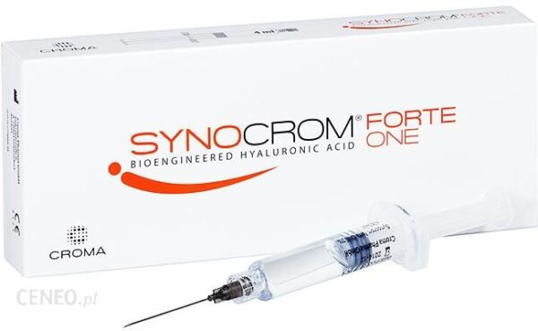 Wysokie stężenie kwasu hialuronowego oraz wytwarzanie trójwymiarowej sieci, zapewnia największą lepkosprężystość preparatu co powoduje szybsze złagodzenie bólu. Synocrom Forte One jest preparatem, który powstał dzięki najnowocześniejszej technologii, kwas hialuronowy jest poddany łagodnej stabilizacji – metodzie opatentowanej przez firmę Croma Pharma. Dzięki największej dawce kwasu hialuronowego Synocrom Forte One pozostaje w stawach najdłużej, a w związku z tym wystarczy tylko jeden zastrzyk. Synocrom Forte One dzięki pochodzeniu z biofermentacji oraz wewnętrznej i zewnętrznej sterylizacja parowej w autoklawie posiada doskonały profil bezpieczeństwa. Każda ampułko strzykawka posiada luer lock, który zapewni wygodę lekarzowi i gwarantuje pewną i bezpieczną iniekcję.
