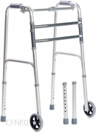 Prezentowane produkty na stronie mogą nieznacznie odbiegać od rzeczywistości, tolerancja wymiarów +/- 1 cm oraz wagi +/- 5 %. ZASTOSOWANIE: Sprzęt pomocniczo-rehabilitacyjny ułatwiający pionizacje i poruszanie się. CECHY PRODUKTU: balkonik łączący w sobie trzy funkcje, może być używany jako kroczący, stały, bądź stały z kółkami, składana rama aluminiowa, stabilna i wytrzymała konstrukcja, łatwy sposób zablokowania funkcji kroczącej, wymienne stopki podporowe zakończone gumą, dodatkowe wymienne stopki przednie wyposażone w kółka o średnicy 12 cm, ergonomiczne uchwyty, wysokość regulowana skokowo co 2,5 cm. Szerokość 60 cm Wysokość 82 – 100 cm Waga z kółkami 2,5 kg Maksymalne obciążenie 110 kg