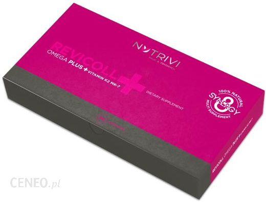 Suplement diety Revicoll Omega Plus + Vitamin K2MK7 zawiera wysokie stężenie kwasów tłuszczowych Omega 3, aminokwasów, peptydów i kolagenu rybiego, a działanie obecnych w preparacie wapnia i witaminy D istotnie wspiera niezbędna do ich prawidłowego funkcjonowania witamina K2MK7. Skład preparatu uzupełniają witaminy A i E, co czyni go kompleksowym pod względem zawartości witamin rozpuszczalnych w tłuszczach.Preparat w nowym wydaniu to:nowy kartonik z przejrzystą broszurką2,5-krotnie większa ilość witaminy Dnowy, zielony kolor kapsułki – dzięki dodatkowi naturalnego składnika – chlorofiliny. Komplementarny i kompletny – zawiera pełen zestaw rozpuszczalnych w tłuszczach witamin A, D, E, K oraz przydatną do ich prawidłowego przyswajania „kroplę tłuszczu” w postaci oleju rybiego.Składniki: olej rybi (w tym 36% EPA i 24% DHA), sproszkowane ości rybie, olej słonecznikowy, emulgator (dwutlenek krzemu),witamina K (menachinon-7), witamina E (octan DL-alfa tokoferylu), witamina D (cholekalcyferol), witamina A (palmitynian retinylu), barwnik (chlorofilina), otoczka kapsułki (żelatyna rybia).Producent: WellU Science & Technology Sp. z o.o., ul. Kmdr. Przybyszewskiego 4, 81-267 GdyniaSTOSOWANIEZALECANA PORCJA DO SPOŻYCIA W CIĄGU DNIA:Dorośli, dzieci i młodzież 10-18 lat: 2 kapsułki dziennie popijając wodą. Dzieci od 3 do 10 roku życia: 1 kapsułka dziennie, popijając wodą. Nie należy przekraczać zalecanej porcji do spożycia w ciągu dnia. Suplement diety nie może być stosowany jako substytut zróżnicowanej diety.UWAGI I ZALECENIA:Nie spożywać po upływie daty minimalnej trwałości. Nie spożywać w przypadku nadwrażliwości na którykolwiek ze składników preparatu. Kobiety w ciąży i karmiące piersią przed spożyciem preparatu powinny skonsultować się z lekarzem. Produkt nie jest przeznaczony dla dzieci poniżej 3 roku życia.Przechowywać w temperaturze pokojowej, w suchym miejscu, w zamkniętym opakowaniu, w sposób niedostępny dla małych dzieci.